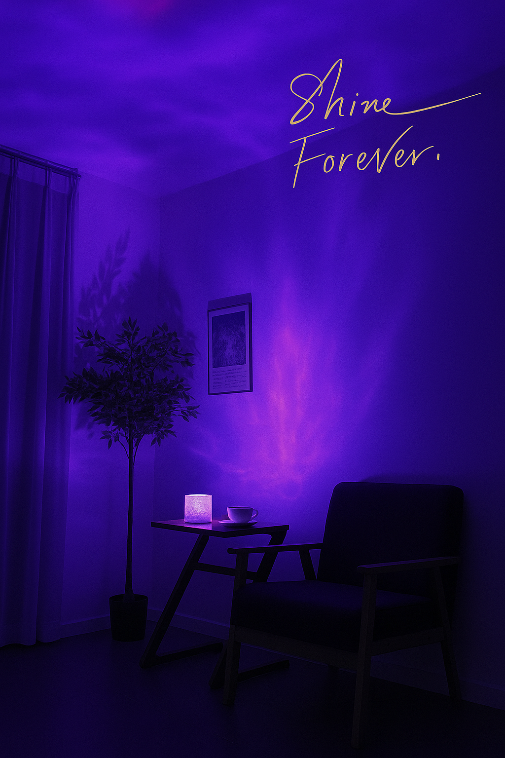 After: One touch changed everything. Light filled the space with color, warmth, and emotion. It became more than a room — it became a vibe.